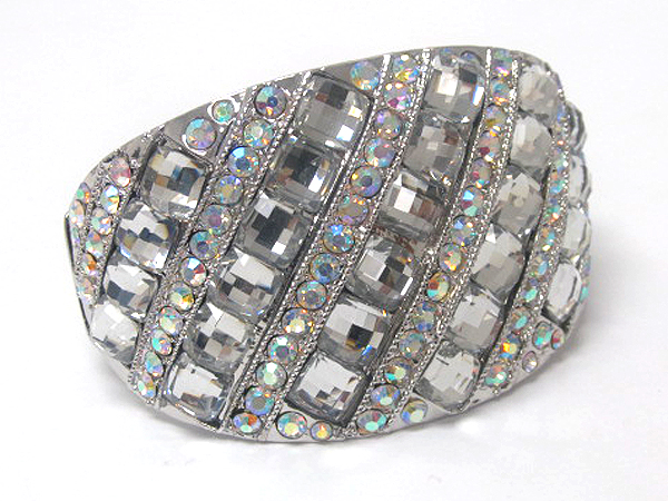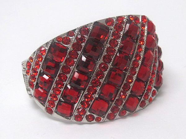 Multi crystal glass square line patern and multi crystal line metal hinge bangle