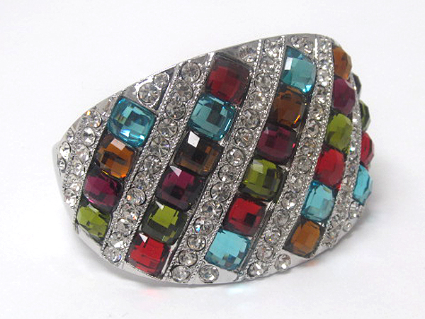 WHOLESALE MULTI CRYSTAL GLASS SQUARE LINE PATERN AND MULTI CRYSTAL LINE METAL HINGE BANGLE 380487