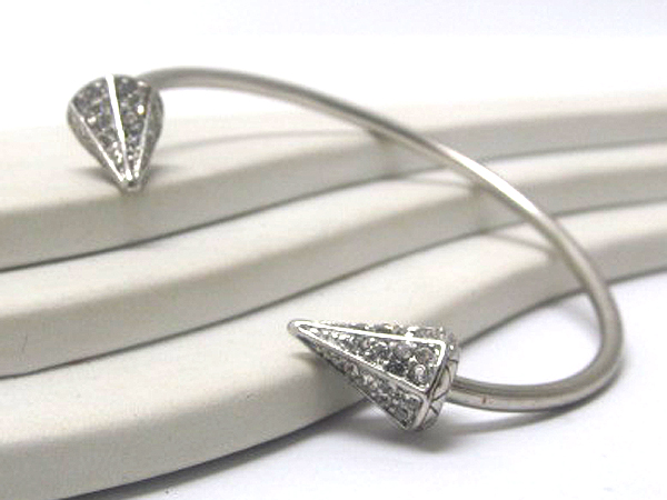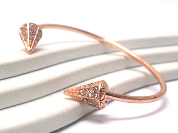 Metal crystal diamond shape spikes ends fashion cuff bangle