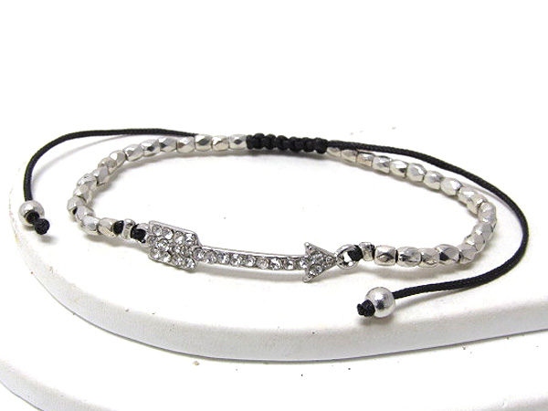 WHOLESALE CRYSTAL DECO ARROW AND MULTI METAL SEED BEADS BRAIDED CORD BRACELET 380643
