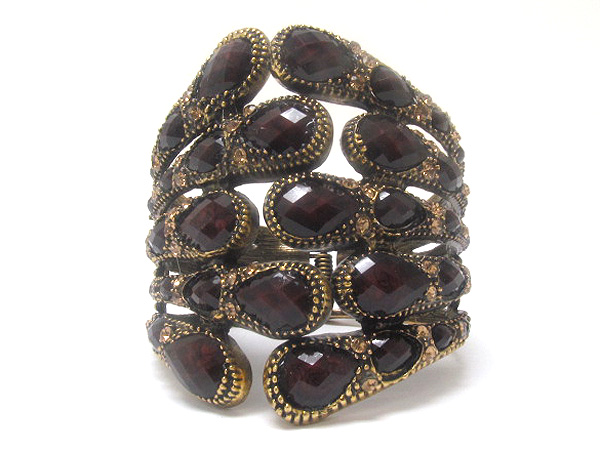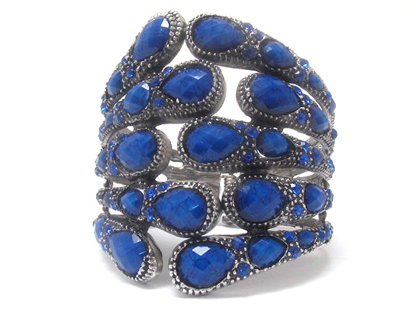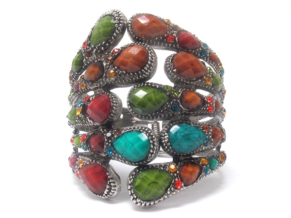 WHOLESALE MULTI CRYSTAL WITH MULTI LINE PATERN METAL TEAR DROP TEXTURED INSIDE CRYSTAL GLASS FASHION HINGE BANGLE BRACELET 380877