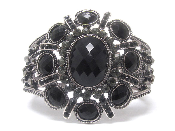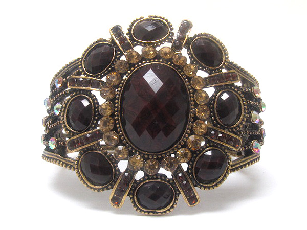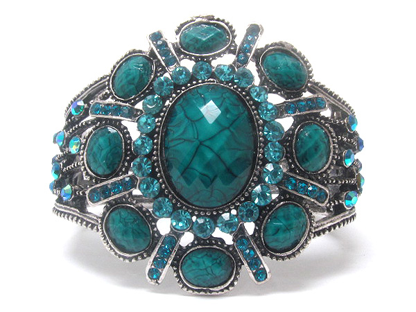 WHOLESALE MULTI CRYSTAL WITH MULTI OVAL PATERN METAL TEXTURED INSIDE CRYSTAL GLASS OVAL FASHION HINGE BANGLE BRACELET 380881