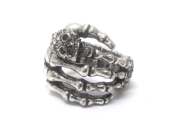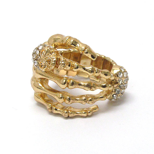 WHOLESALE SMALL CRYSTAL METAL PUFFY SKULL AND HEART WITH METAL FASHION HAND STRETCH RING 380887
