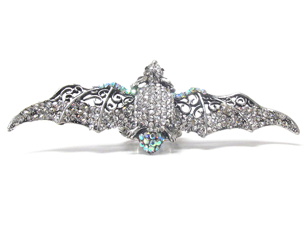 Crystal metal filigree fashion large bat stretch ring