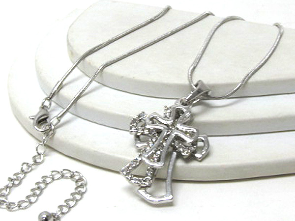 WHOLESALE TRIPLE CRYSTAL CROSS NECKLACE 381276