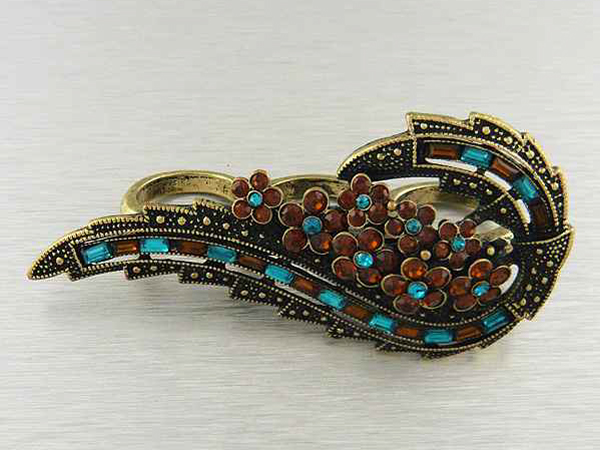 WHOLESALE MULTI CRYSTAL FLOWERS AND FASHION STYLE DUAL RING 381388