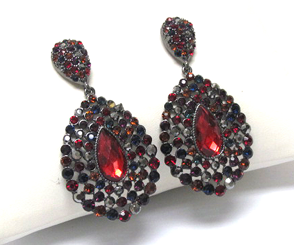 Multi crystal drop two tear drop center crystal glass drop earring