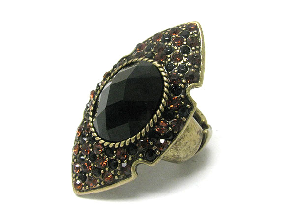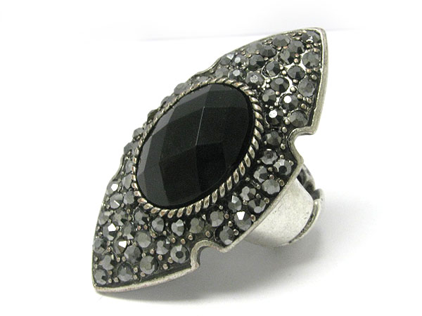 WHOLESALE CRYSTAL METAL ARROWHEAD ON CENTER FACET GLASS STONE STRETCH RING 381480
