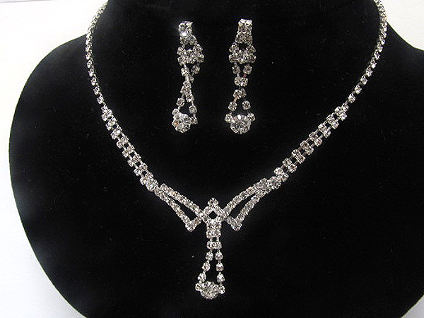 Rhinestone drop v line dangle party necklace earring set
