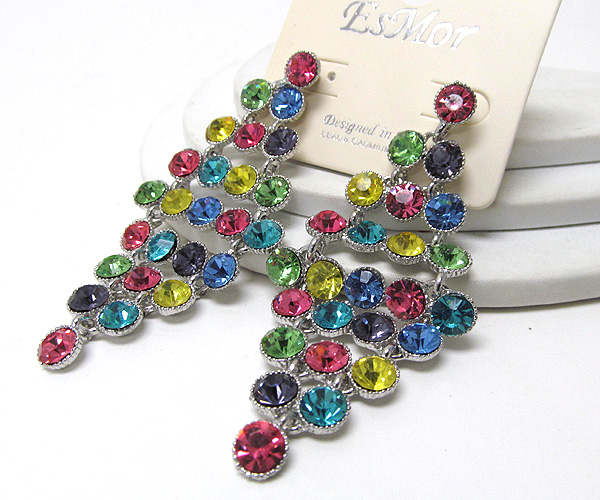 WHOLESALE MULTI RHINESTONE LINE METAL ARROWHEAD DROP EARRING 381647