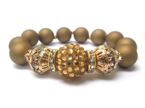 Multi sandy balls and metal crystal balls and one fire ball fashion stretch bracelet