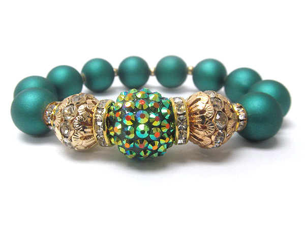 WHOLESALE MULTI SANDY BALLS AND METAL CRYSTAL BALLS AND ONE FIRE BALL FASHION STRETCH BRACELET 381658