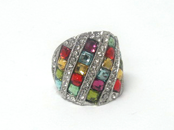 WHOLESALE MULTI CRYSTAL GLASS SQUARE LINE PATERN AND MULTI CRYSTAL LINE METAL STRETCH RING 381771