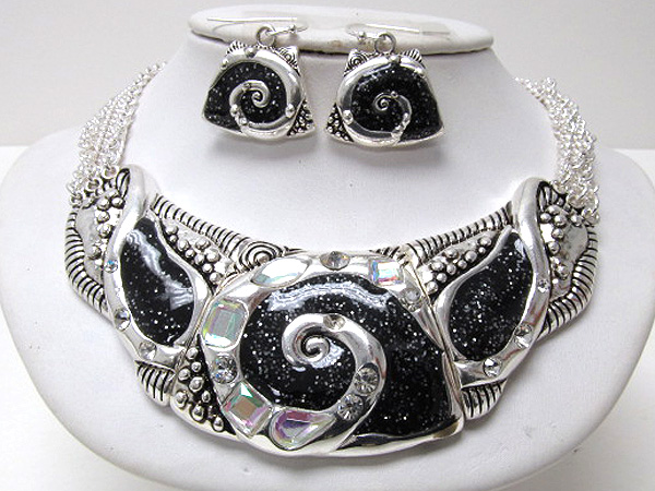 Crystal metal plate organic tribal style drop multi chain necklace earring set