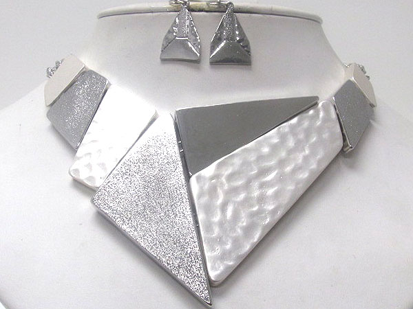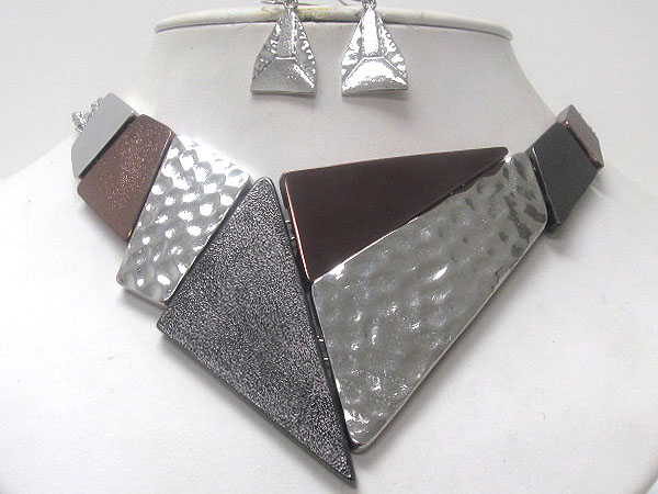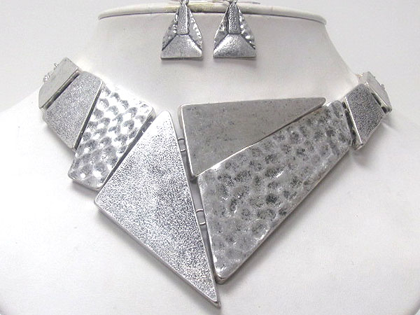 WHOLESALE FASHION ACHITECTURAL STYLE SANDY METAL AND HAMMERED DESIGNER STYLE CHAIN NECKLACE EARRING SET 381821