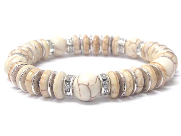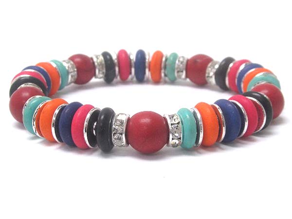 WHOLESALE CRYSTAL RONDELL AND ACRYLIC DISK BEAD LINK STRETCH BRACELET 382093