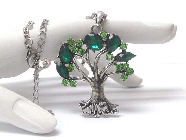 WHOLESALE CRYSTAL LEAF DECO TREE OF LIFE PENDANT LONG NECKLACE 382109
