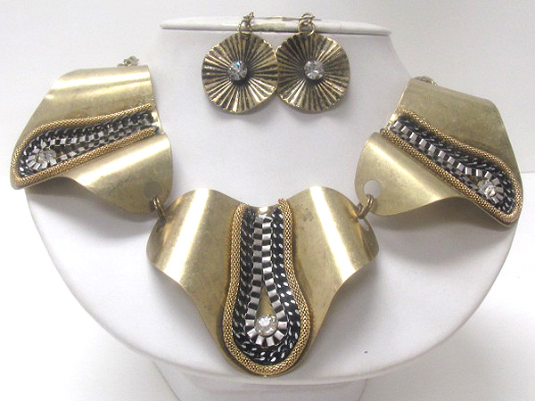 Three bend fashion ovals with chain and tubs on fashion metal drop chain necklace earring set