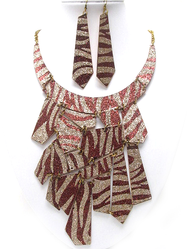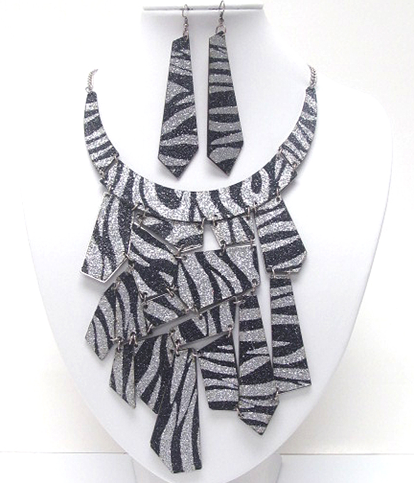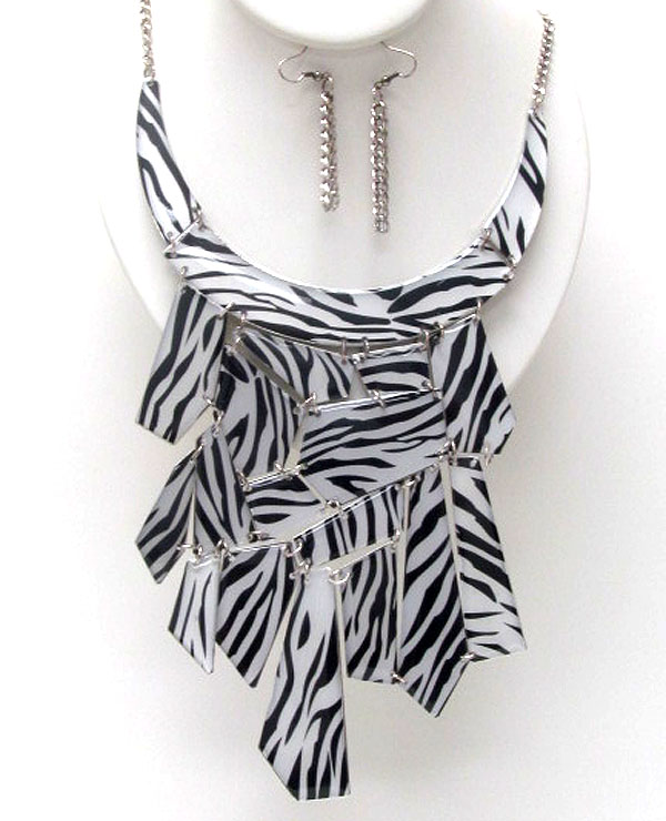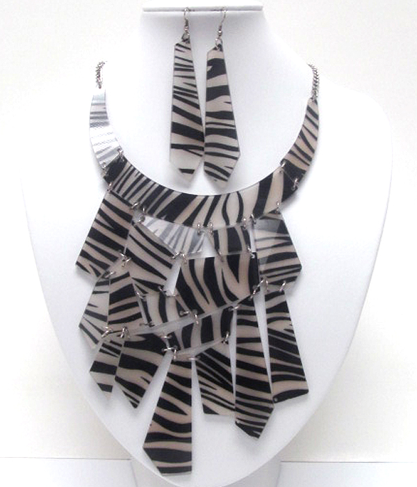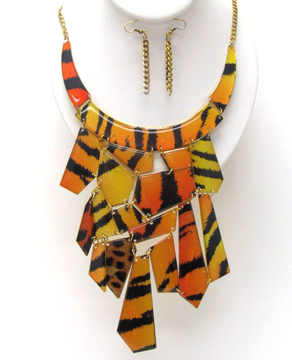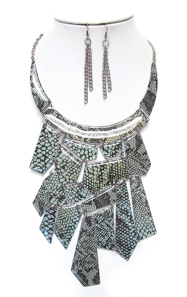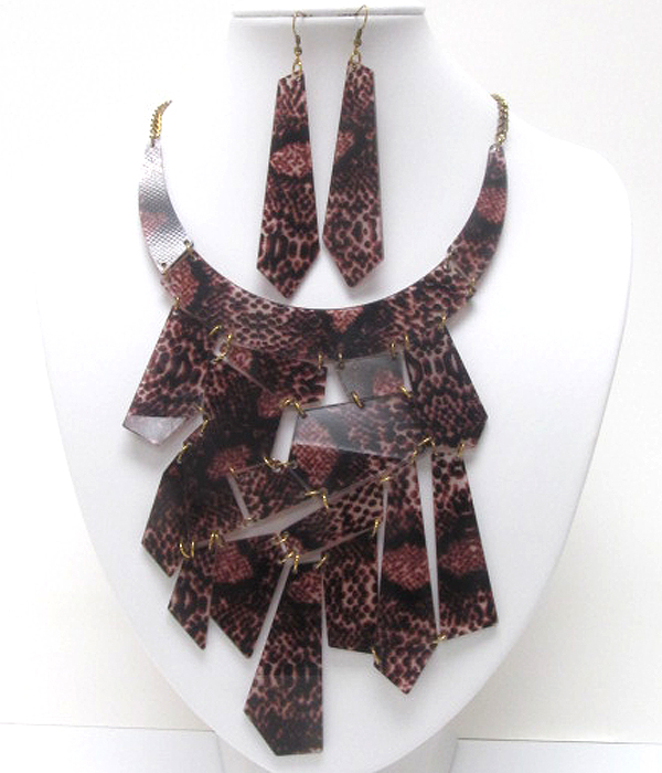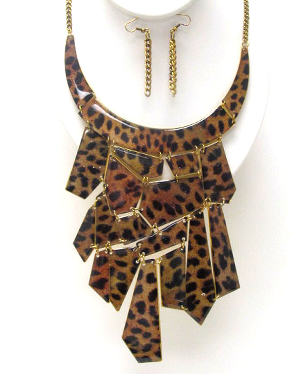 Animal patern acryl on achitectural flat metal link bib necklace earring set