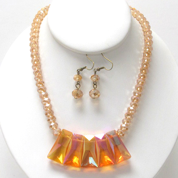 WHOLESALE MULTI FACET GLASS BAR AND GLASS BALL CHAIN NECKLACE EARRING SET 382851