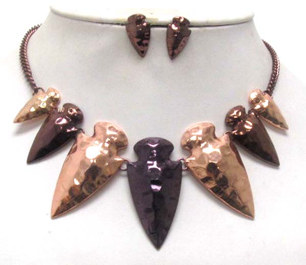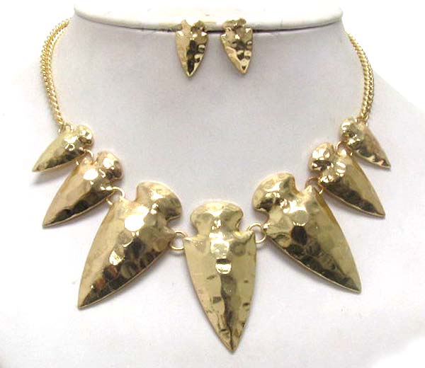 WHOLESALE AZTEC INSPIRED MULTI HAMMERED AND ANIMAL TOOTH SHAPE METAL CHARM NECKLACE EARRING SET -WESTERN 383027