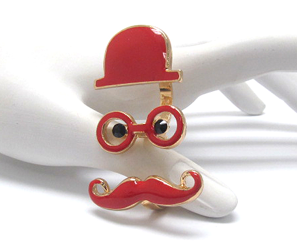 WHOLESALE MUSTACHE THEME ADJUSTABLE DUAL FINGER RING 383163