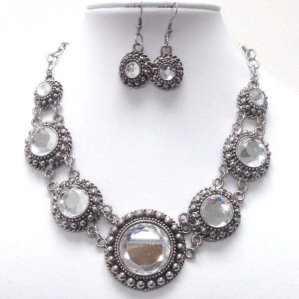 WHOLESALE MULTI FACET GLASS AND METAL BALL DECO DISK LINK NECKLACE EARRING SET 383299