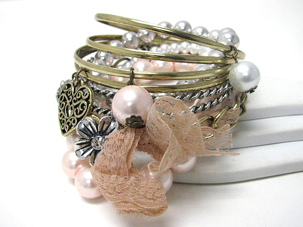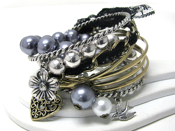 WHOLESALE MULTI BANGLES AND HEART AND FLOWER CHARM MIX BRACELET 383335