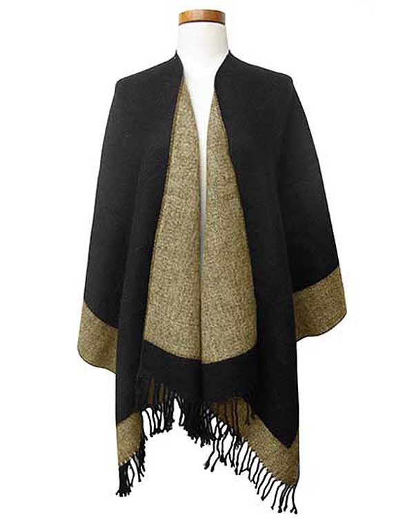 WHOLESALE KNIT ACRYLIC RUANA WITH RUFFLE COLLAR & EDGE DETAIL 383491