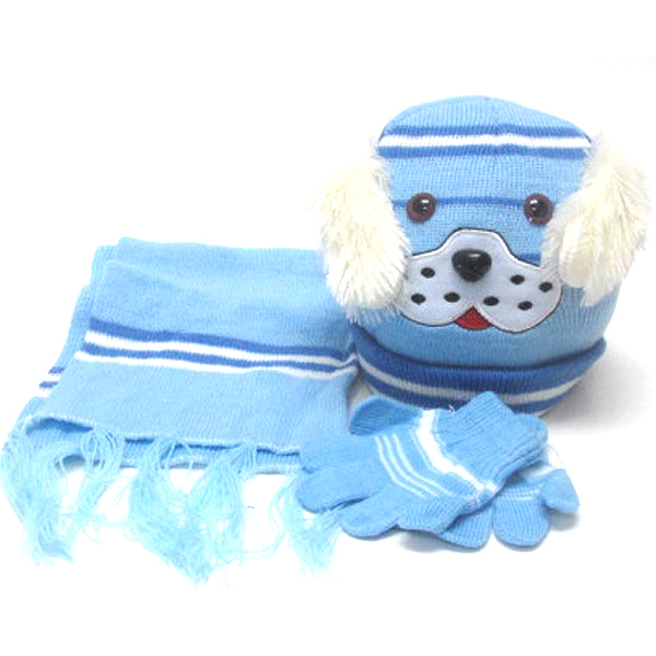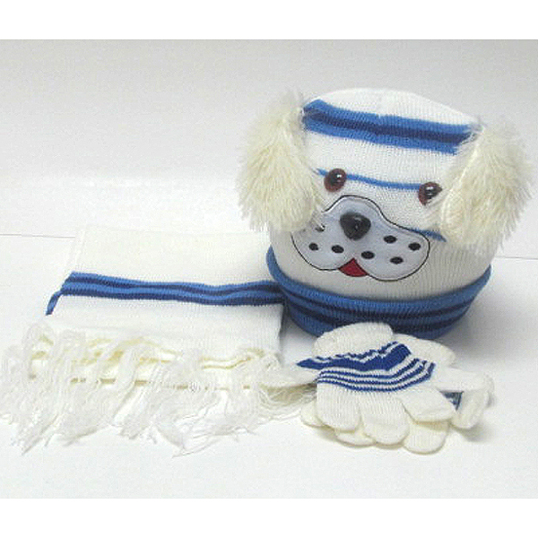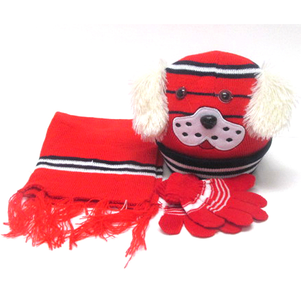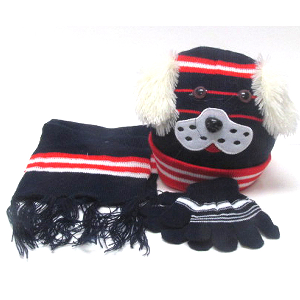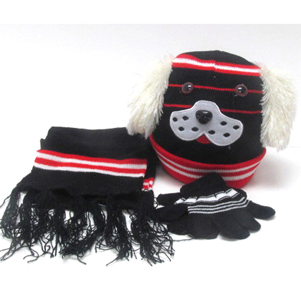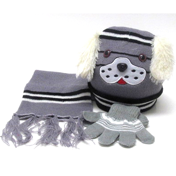 WHOLESALE KIDS ANIMAL WINTER FULL SET - BEANIE MUFFLER GLOVES SET 383549