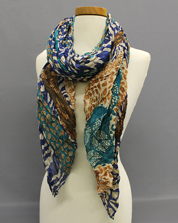 WHOLESALE EXTRA WIDE ANIMAL STRIPS PRINT FALL CRINKLE SCARF 383575