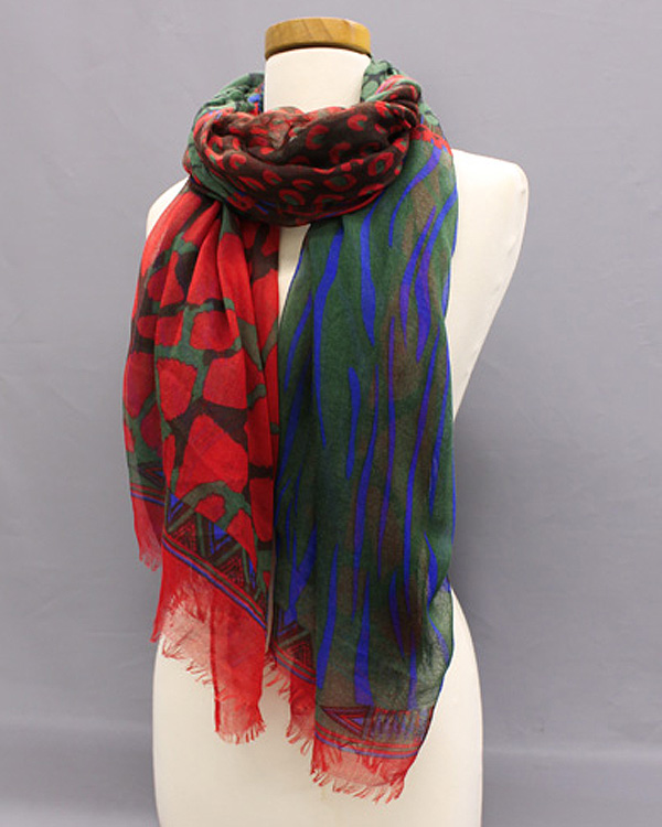 Extra wide multi color animal kingdom print scarf