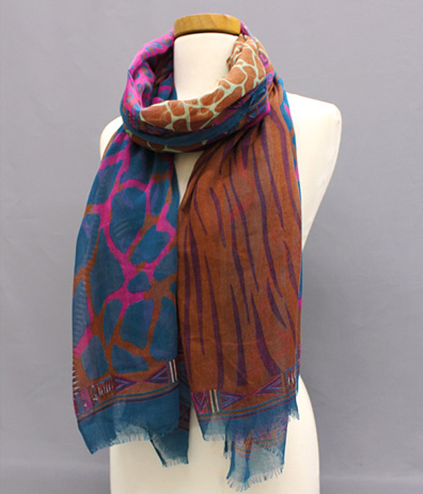 WHOLESALE EXTRA WIDE MULTI COLOR ANIMAL KINGDOM PRINT SCARF 383603
