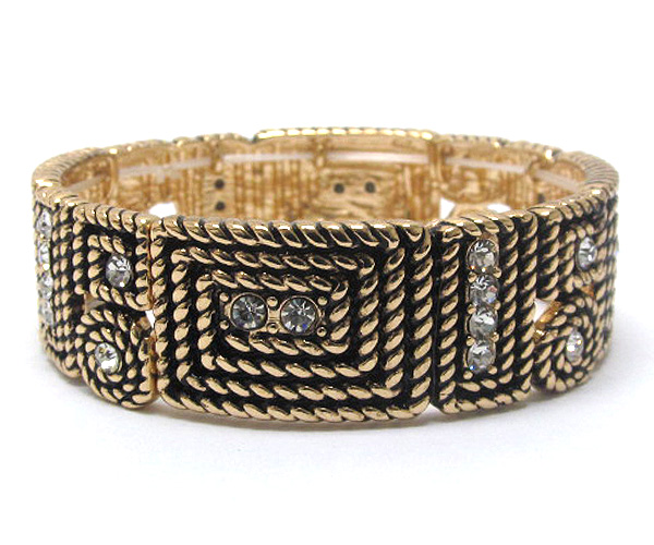 WHOLESALE MULTI CRYSTAL FASHION ROUND AND SQUARE ROPE TEXTURE PATERN TAILORED DESINGN STRETCH BRACELET 383869