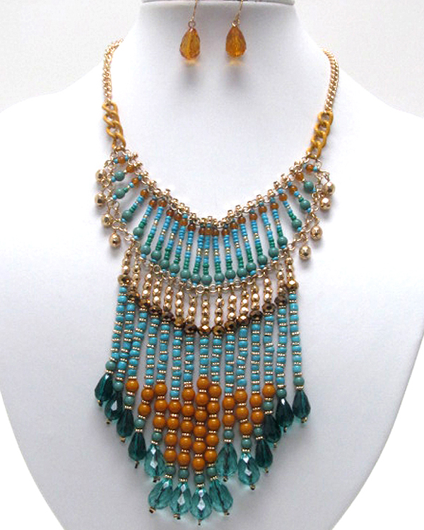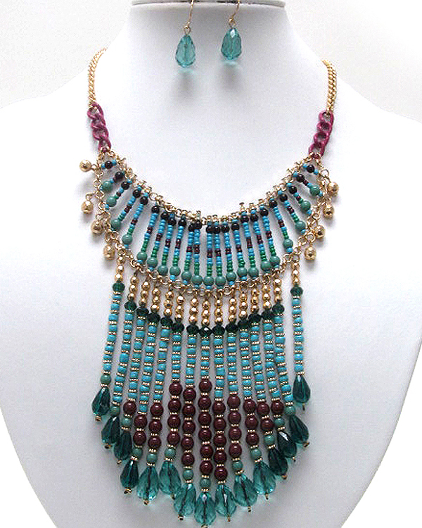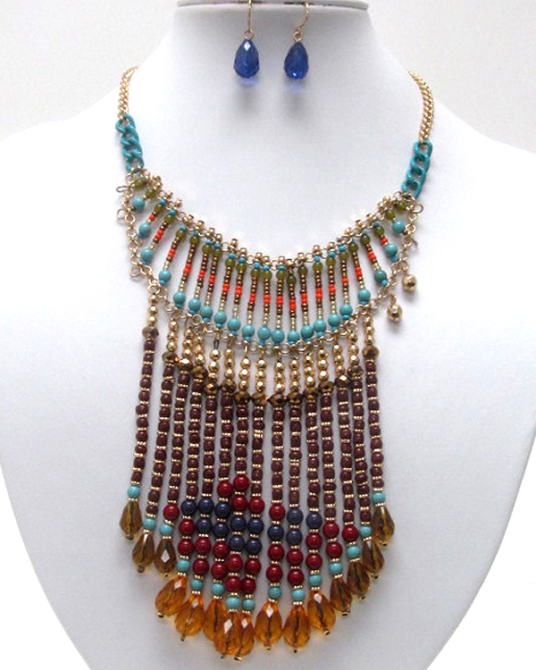 WHOLESALE TRIBAL STYLE MIXED GLASS SEED BEADS LONG DROP NECKLACE EARRING SET 384003