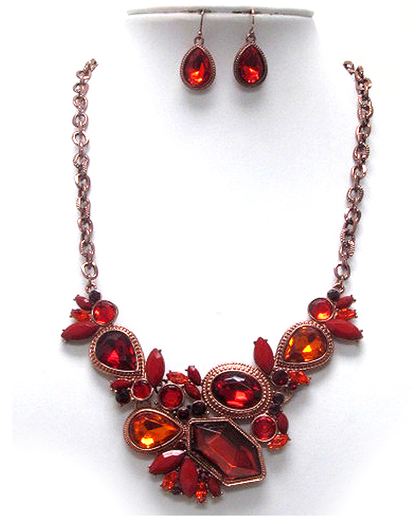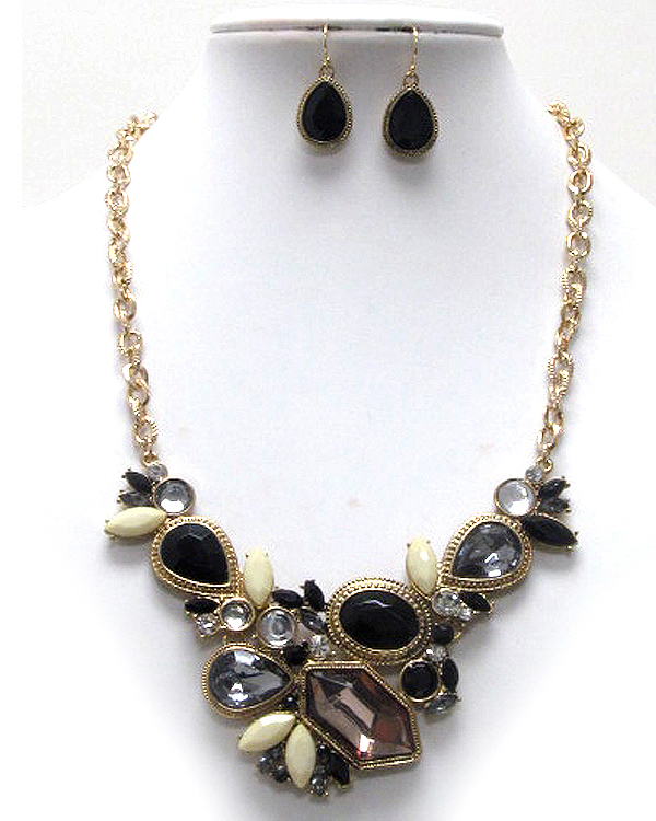 WHOLESALE CRYSTAL AND FACET ACRYLIC STONE COCKTAIL SMALL BIB NECKLACE EARRING SET 384015