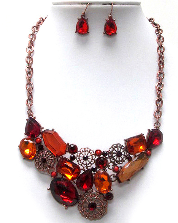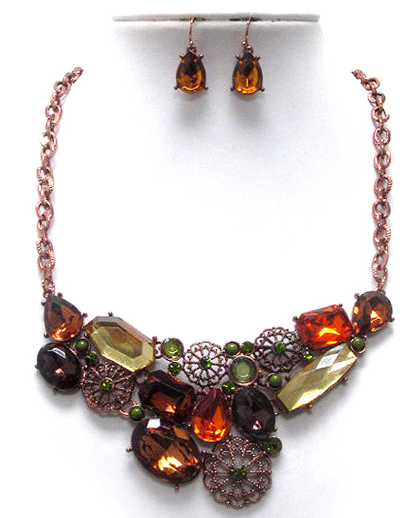 WHOLESALE CRYSTAL AND FACET ACRYLIC STONE COCKTAIL SMALL BIB NECKLACE EARRING SET 384018