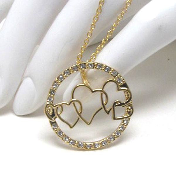 WHOLESALE CRYSTAL METAL CUT OUT FASHION HEARTS ROUND PENDANT CHAIN NECKLACE -VALENTINE 384071