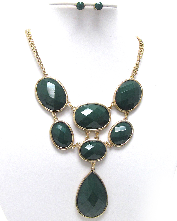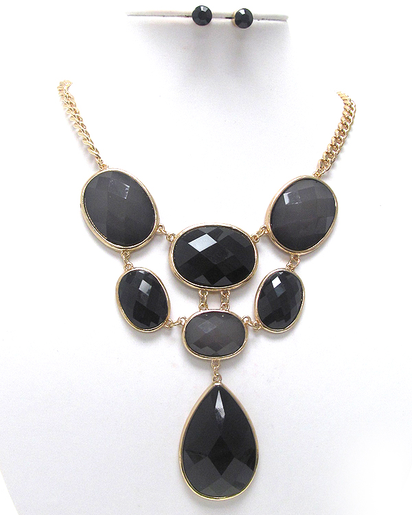 WHOLESALE OVAL AND TEAR DROP GLASS STONE SCRATCH METAL NECKLACE EARRING SET 384144