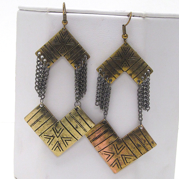 WHOLESALE HAND MADE METAL ART HALF SQUARE CONETED CHAIN DROP EARRING 384147