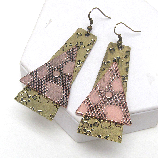WHOLESALE HAND MADE METAL ART RECTANGLE AND TRIANGLE DROP EARRING 384161