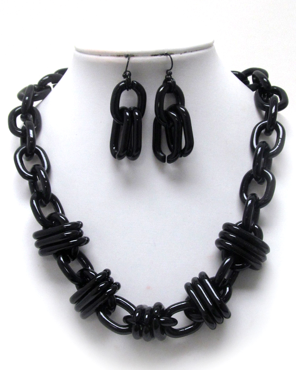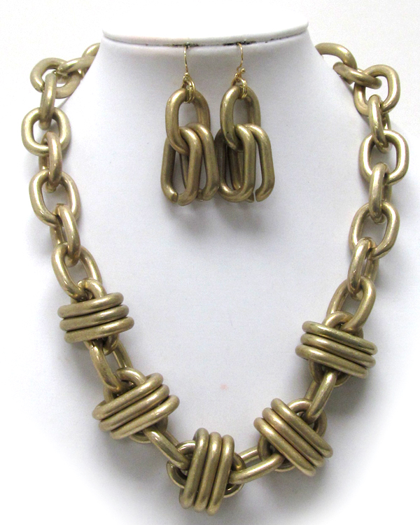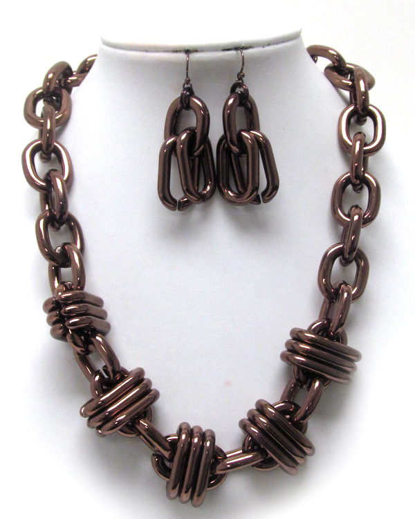 Multi chain metallic thick chain link necklace earring set
