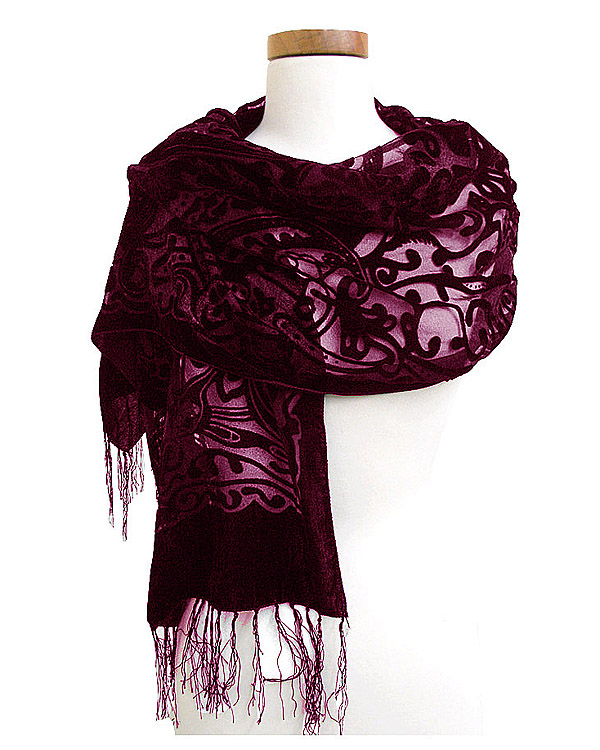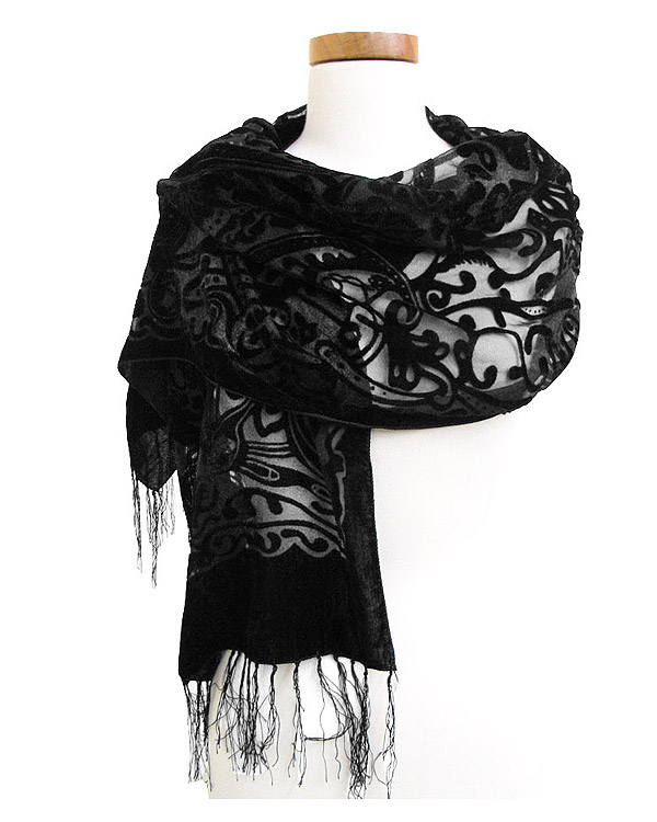 WHOLESALE ANTIQUE PATTERN 100% VELVET BURNOUT SCARF 384711