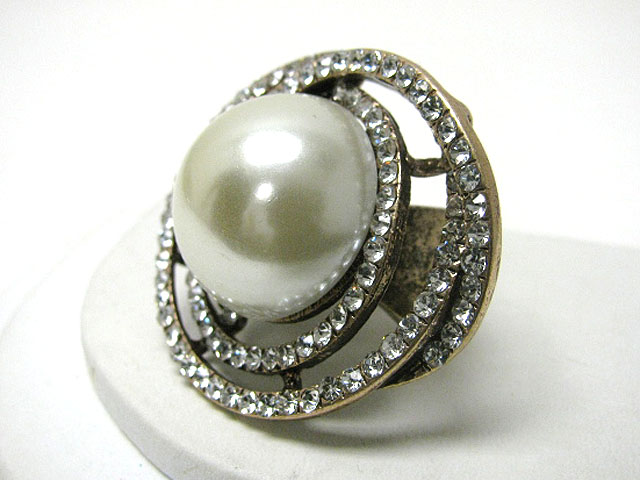WHOLESALE PEARL DOME AND CRYSTAL DECO STRETCH RING 384855