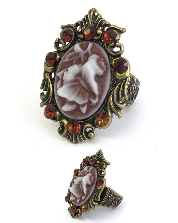 WHOLESALE CRYSTAL DECO OVAL FLOWER CAMEO STRETCH RING 384898