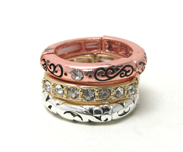WHOLESALE CRYSTAL AND METAL FILIGREE STACKABLE STRETCH RING SET 385222