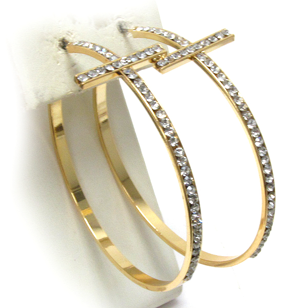 WHOLESALE HALF CRYSTAL AND PLAIN CROSS METAL CASTING HOOP EARRING - HOOPS 385512