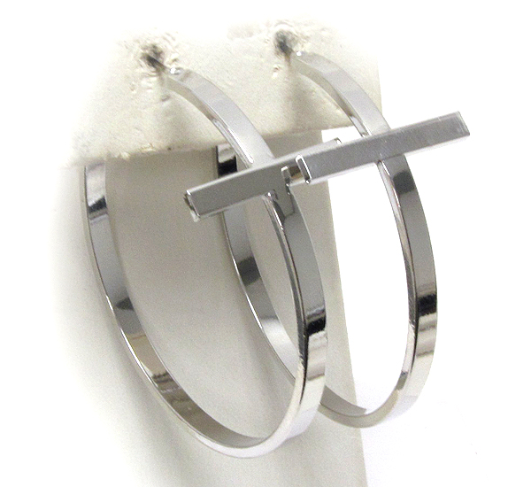 Metal plain cross casting hoop earring - hoops