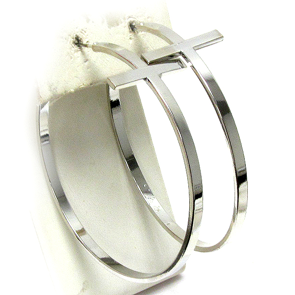 Metal plain cross casting hoop earring - hoops