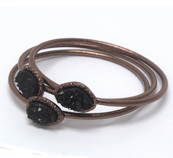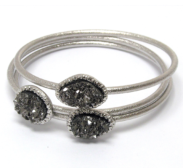 WHOLESALE 3 ROW ROUND ROUGH STONE ON CENTER BANGLE SET 385622